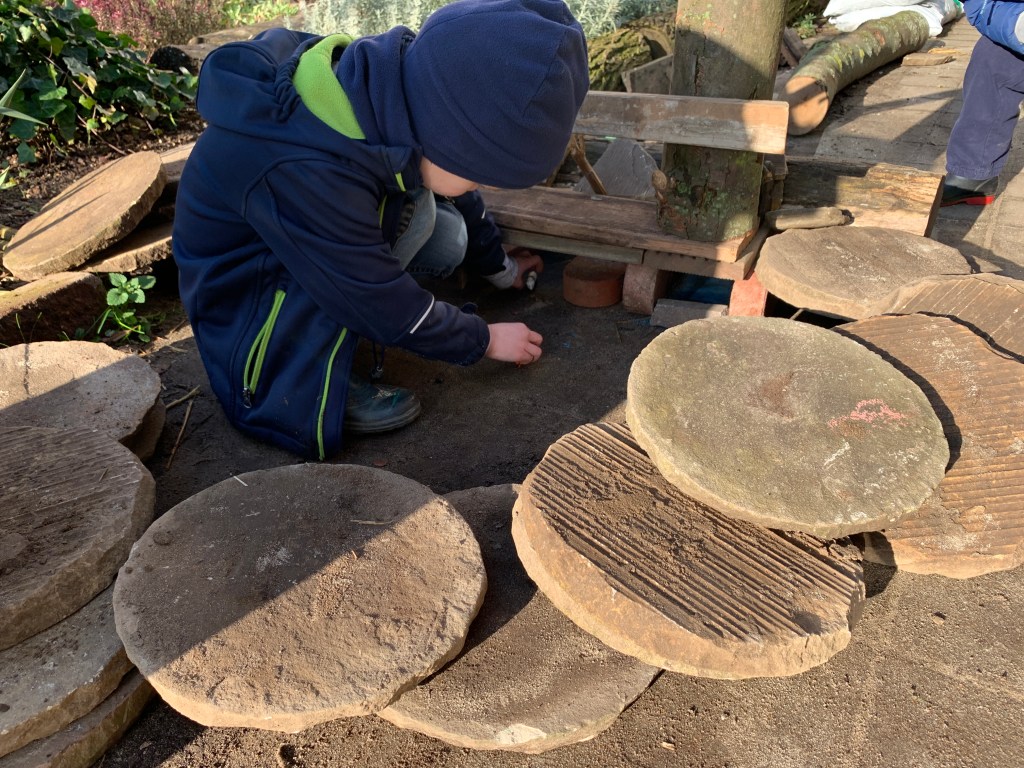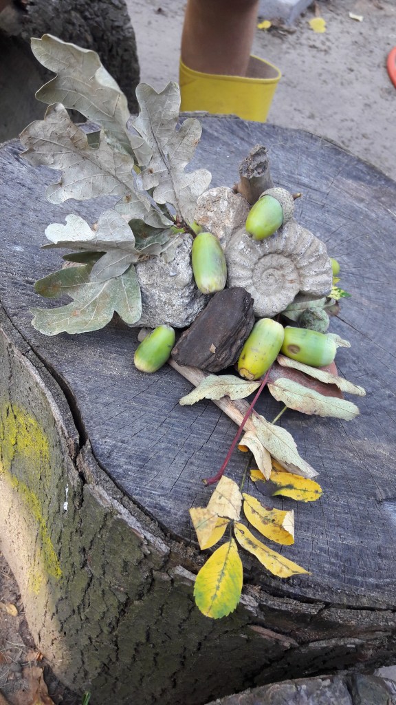 You are going to need two bits of wood to create your spinner: one for the disc and the other for the spindle. For the disc, you’re looking for a small log with a diameter anywhere between 4cm and 7cm. The thickness of your spindle will depend on the size of drill bit that you use to make your hole. We used a 5mm bit and then worked on finding sticks that were the same thickness as our index fingers and then whittled them down.