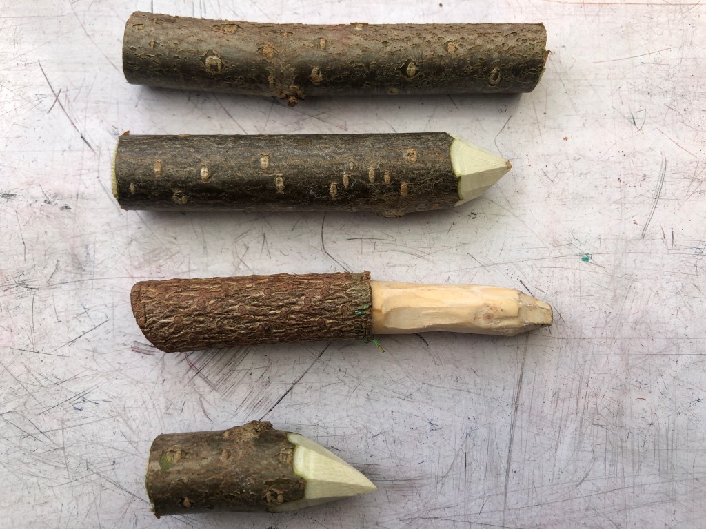 Top Tip: Fresh sticks are easier to carve and are great for ensuring carving success. You’ll get a nice tight fit on the day, but remember to discuss what might happen when the wood dries out.