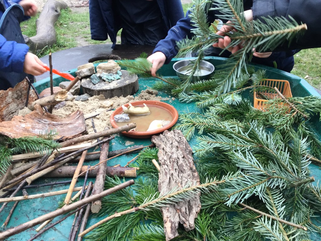 You can use anything that you can get your hands on. Hazel is great if you can find some. Be wary of harder woods like oak that are more difficult to carve. This year, we took advantage of the German Spermüll, or Christmas Tree Graveyard as we like to call it. The branches were a little sappy during the spindle carving process, but overall it worked out great.